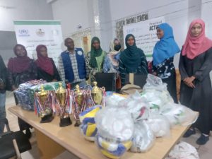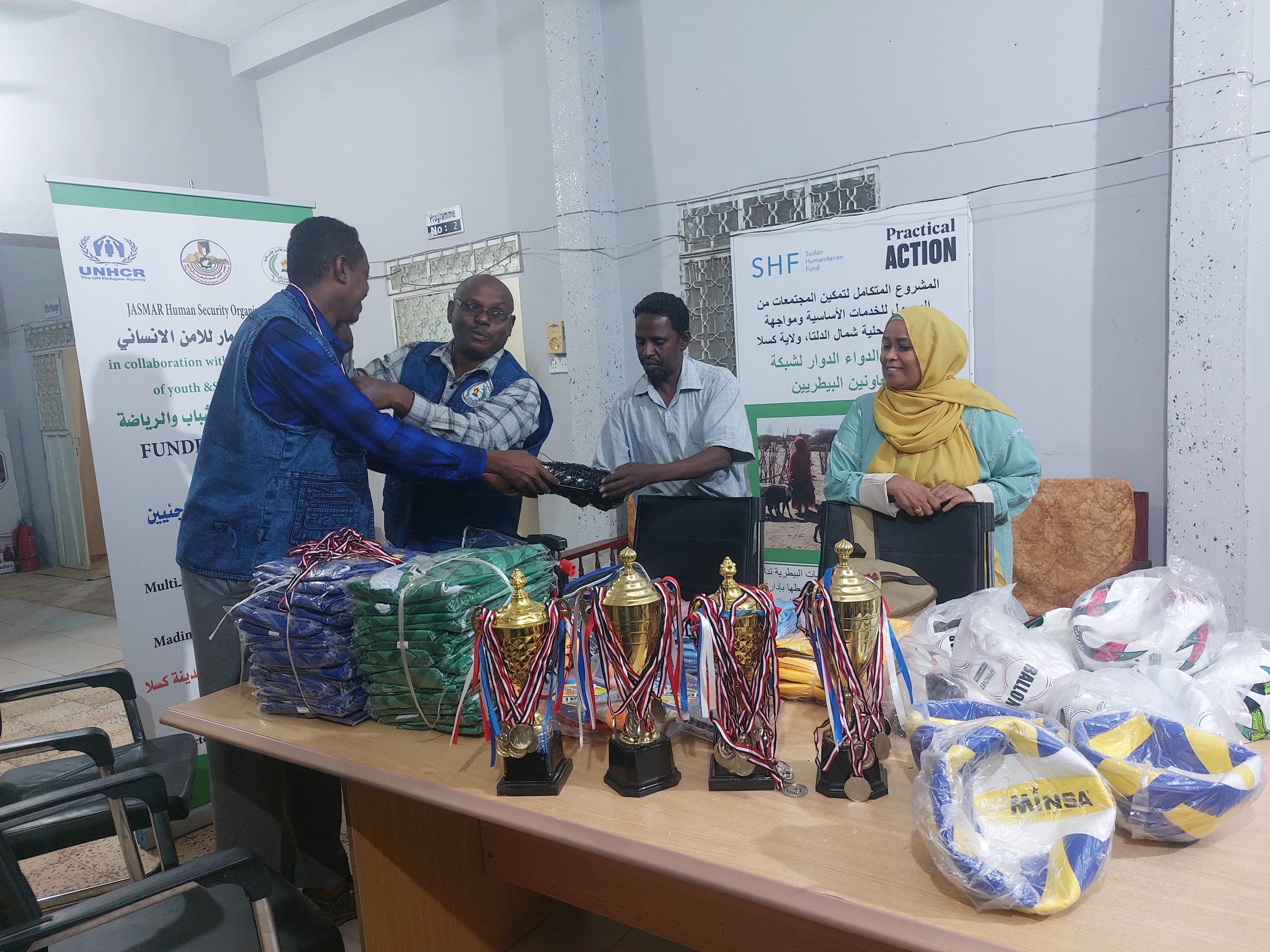 ومن جانبه اشار مدير منظمة جسمار للامن الإنساني بالانابة الاستاذ محمد علي عبدالله الي الشراكة الفاعلة بين المنظمة والادارة العامة للشباب والرياضة التي مكنت المنظمة من الوصول الي أكبر شرائح المجتمع خاصة الشباب مبينا ان هذا المشروع يهدف لمساندة النازحين وقال ان هذا المعينات قد تسهم في تنفيذ العديد من الانشطة والدورات الرياضية بدور الايواء مجددا التزام المنظمة ومواصلتها لدعم الانشطة والبرامج الاجتماعية والتنموية لخدمة النازحين والمواطين بالولاية .