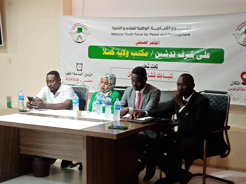 اكد الاستاذ مهند يعقوب الامين العام القوي الشبابية الوطنية السلام والتنمية خلال مؤتمر صحفي تعاطفه مع ضحايا الحرب والمتاثرين التي تدور رحاها في معظم انحاء السودان جاء ذلك في سياق حديثه بالمؤتمر الصحفي بقاعة طولوس بولاية كسلا لتدشين مكتب القوي الشبابيه الوطنيه للسلام والتنمية بولاية كسلا ،