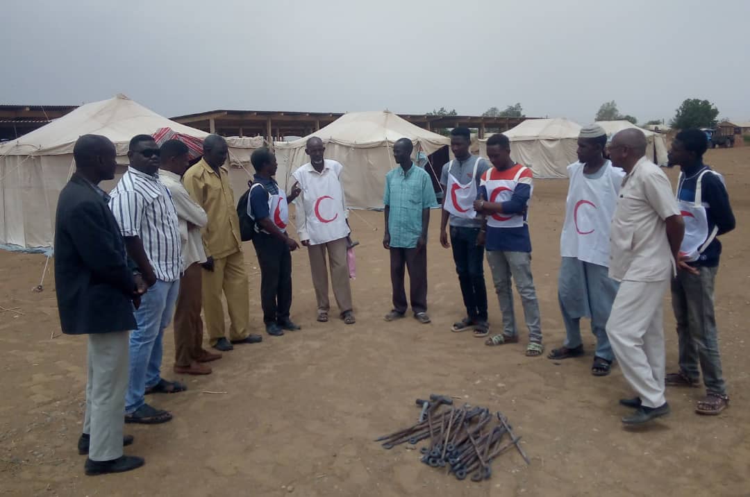 الاستاذ/ موسى عبدالكريم رئيس لجنة التسكين بموقع معسكر الكرامة أو مصنع البصل للوافدين .. موضحا أن العمل بالمركز بدأ منذ اسبوع بالتجهيزات بتسويت الأرض بالقريدر ورفع الأنقاض والارض الان جاهزة لتركيب الصيوانات ويوجد عدد مقدر من الصيوانات استلمت من منظمة بلان سودان والدفاع المدني بدأ عمل تركيبها .. وقال إن هنالك التزامات من المنظمة الألمانية بتركيب غرف للهنكرات الثلاثة