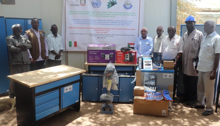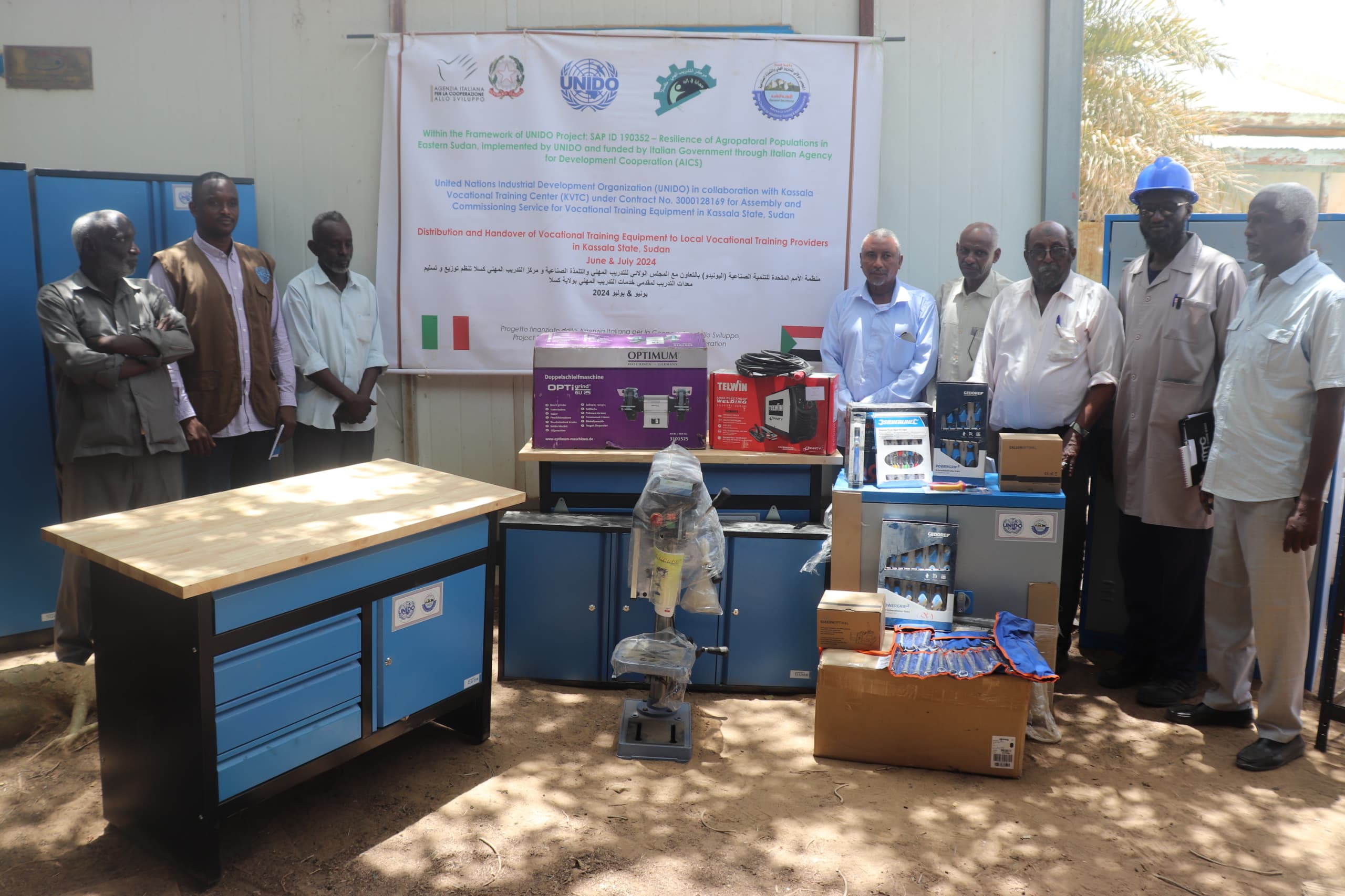 شهد الاستاذ/ ماهر الحسين المدير العام الوزير المكلف لوزارة التربية والتوجيه .. تنظيم توزيع وتسليم معدات التدريب لمقدمى خدمات التدريب المهنى من منظمة الأمم المتحدة للتنمية الصناعية ( اليونيدو ) بالتعاون مع المجلس الولائى للتدريب المهنى والتلمذة الصناعية ومركز التدريب المهنى .. بتمويل من الوكالة الإيطالية للتعاون الانمائى .. بحضور الاستاذ/ صلاح الحاج ناصر مدير التعليم الفنى بالولاية .. ومدير المشروعات .. ومدير مركز التدريب المهنى .. وألامين العام للمجلس الولائى والتدريب المهنى والتلمذة الصناعية
