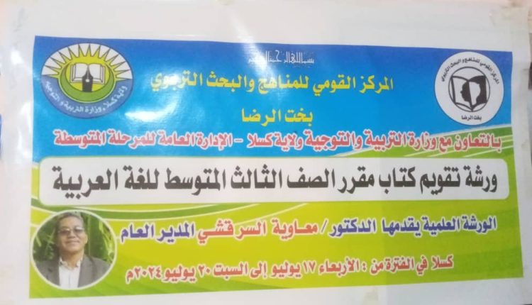 مدير عام المركز القومي للمناهج والبحث التربوي بخت الرضا يترأس ورشة تقويم كتاب مقرر الصف الثالث المتوسط للغة العربية
