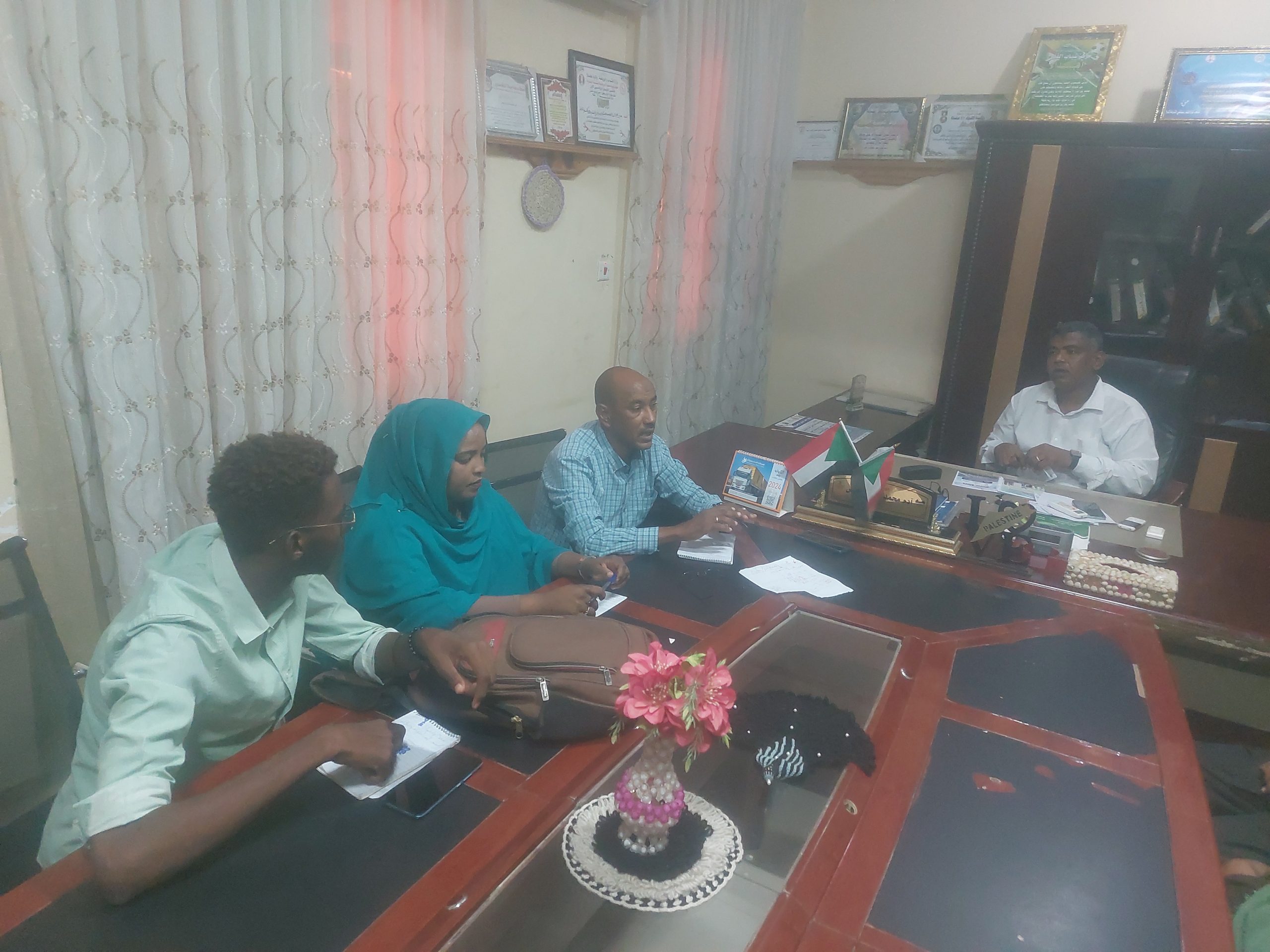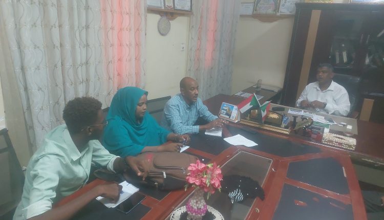 التقي المهندس ادم محمد ادم جرنوس مدير الادارة العامة للشباب والرياضة بولاية كسلا برئيس جمعية أرتاكا الفنية -ARTAKA الاستاذ مجتبي كنان بحضور مدراء الادارات التابعه للوزارة