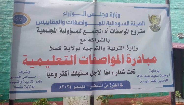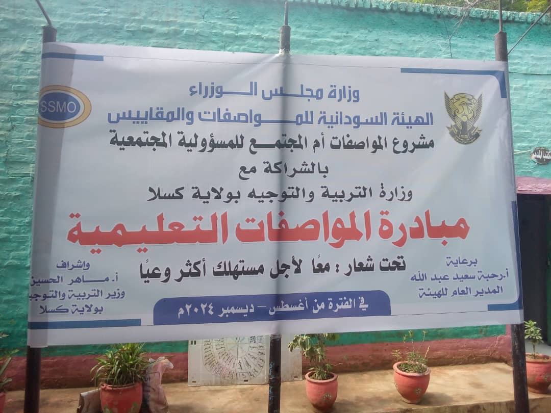 دشن الاستاذ/ ماهر الحسين مدير عام وزارة التربية والتوجيه الوزير المكلف ولاية كسلا .. بمدرسة الميرغنية الشرقية الابتدائية بنين مشروع المواصفات ام المجتمع للمسؤلية المجتمعية مبادرة المواصفات التعليمية .. تحت شعار : معا لأجل مستهلك أكثر وعيا .. التى نفذت عبر الهيئة السودانية للمواصفات والمقاييس بالشراكة مع وزارة التربية والتوجيه ورعاية كريمة من الأستاذة / رحبة سعيد عبدالله مدير عام الهيئة السودانية للمواصفات المركز العام .. وحضور كبير من القانونيين والقيادات السياسية والمجتمعية وأسر الطلاب .