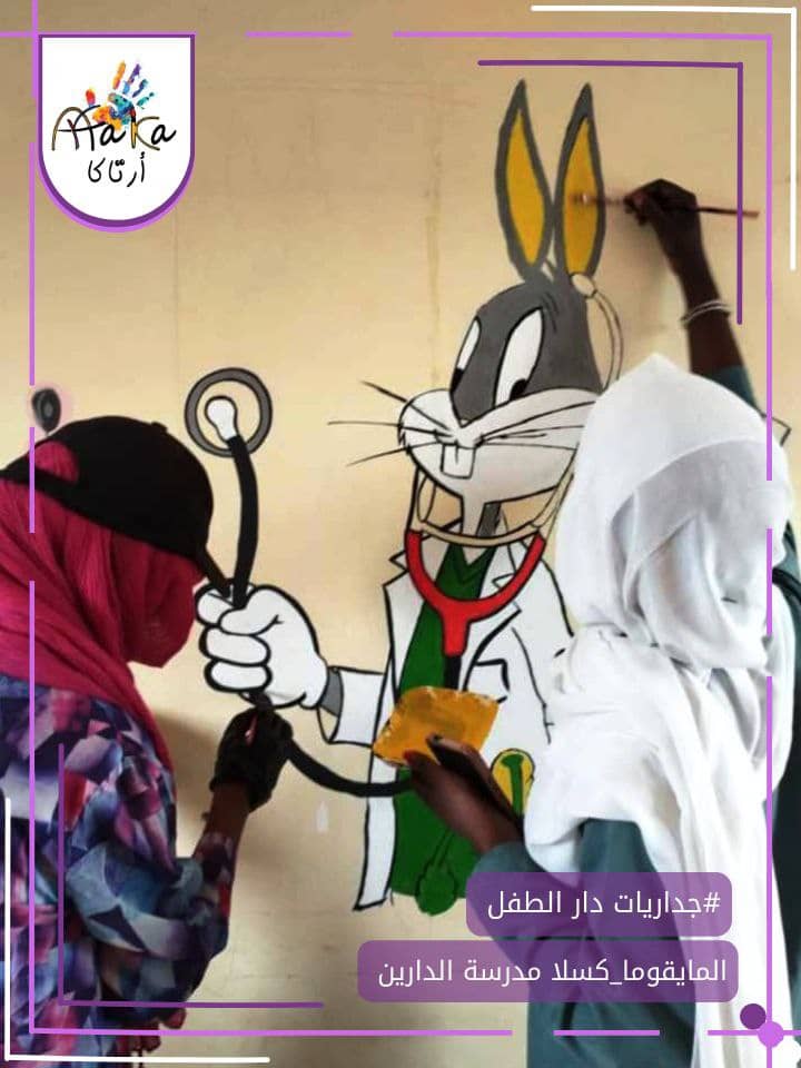 نفذت جمعية أرتاكا الفنية بالتعاون مع منظمة بلو أسكاي مجموعة من الجداريات الفنية في دار رعاية الأطفال فاقدي السند (مركز إيواء أطفال المايقوما) في مدرسة الدارين الخاتمية القديمة، خلال فعالية اليوم المفتوح.