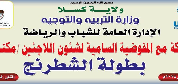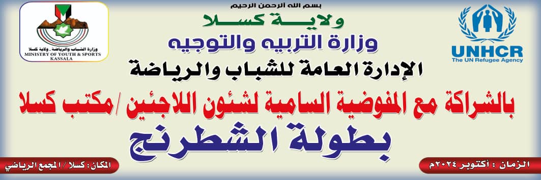 انطلقت بولاية كسلا فعاليات بطولة الشطرنج على مستوى ولاية كسلا، وسط حضور كبير ومشاركة واسعة من لاعبي الشطرنج من مختلف محليات الولاية. تأتي هذه البطولة بتنظيم من الاتحاد المحلي للشطرنج وبدعم ورعاية المفوضية الساميةللامم المتحدة لشئون اللاجئين وباشراف الادارة العامة للشباب والرياضة وتهدف البطولة لتعزيز الأنشطة الرياضية والفكرية في الولايةوتحريك الوسط الرياضي بالولاية وتستمر لمدة عشرة ايام كما تهدف البطولة إلى اكتشاف المواهب الجديدة وتطوير مهارات اللاعبين .