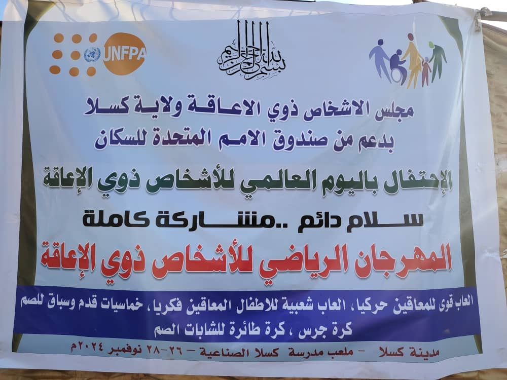 شهد المهندس ادم محمد ادم جرنوس المدير العام للإدارة العامة لشباب والرياضة بولاية كسلا انطلاقة فعاليات المهرجان الرياضي للأشخاص ذوي الإعاقة بميدان المدرسة الصناعية ضمن البرامج المصاحبة للاحتفال باليوم العالمي للاشخاص ذوي الإعاقة الذي نظمه مجلس الأشخاص ذوي الإعاقة بدعم من صندوق الأمم المتحدة لسكان