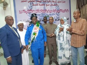 *في ختام الحفل تم تكريم الطلاب والطالبات أصحاب البحوث الفائزة من قبل والي كسلا بالإنابة ومدير شرطة الولاية ومديرة جامعة كسلا*