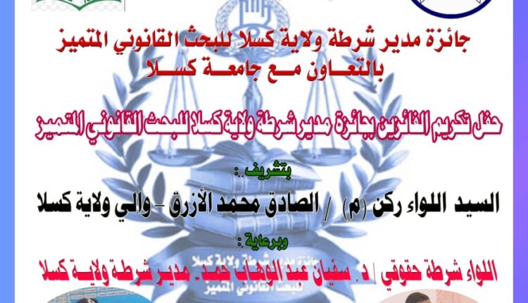 *تكريم الفائزين بجائزة مدير شرطة ولاية كسلا للبحث القانوني المتميز في حفل رفيع المستوى بحضور والي كسلا بالإنابة*